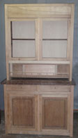 Se retiró el acabado anterior y se aplicó tratamiento anti-carcoma a todo el mueble. Se sustituyeron los cuatro tacos de escasa altura sobre los que descansaba el mueble, por cuatro patas torneadas de más altura con el fin de realzar el conjunto y preservar de humedades la parte inferior del mueble .La parte exterior del mueble se terminó con la aplicación de un barniz de alta calidad, para lo que previamente se lijó y tiñó en el color más similar al de partida. El interior del mueble se terminó a la cera.